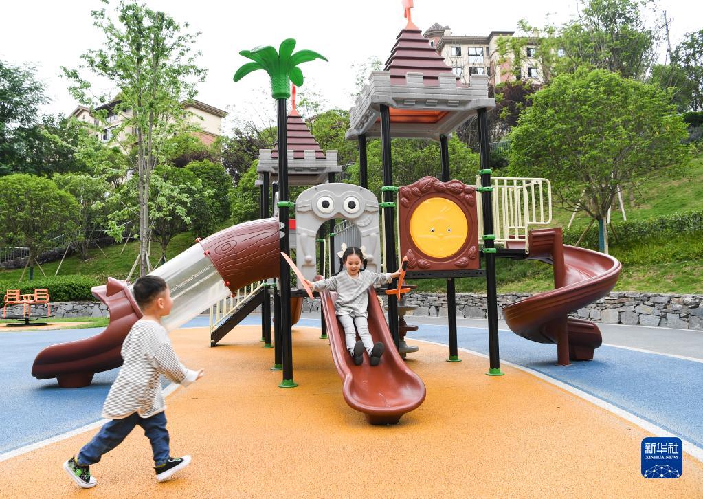 4月29日,小朋友在石子山社区体育文化公园玩耍。新华社记者王全超摄
