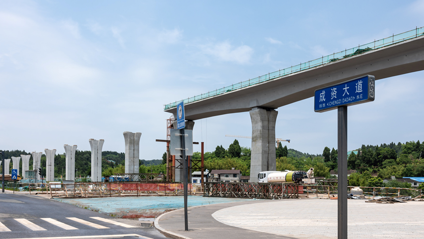 据了解,轨道交通资阳线分一、二两个施工工区,其中一工区主要为地上施工区间,正线总长度约27.77公里,其中包含22.69公里的高架段,4.65公里的路基段,以及一段长226米的隧道。