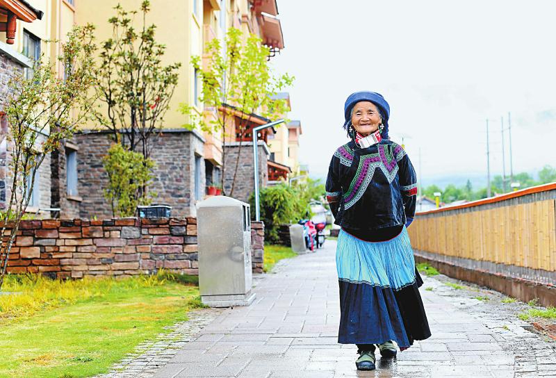 20222022年5月9日,72岁的阿子日哈在安置点的小区里散步。搬下山后,她和女儿某色阿都一家生活在一起。现在,她常说,出门有客车,夜里有路灯,社区有医院,这样的好日子,是以前做梦都不敢想的。
