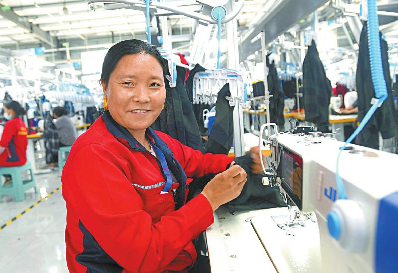 、20222022年5月11日,吉莫石普在制衣车间里工作,如今她已经能熟练操作缝纫机了。
