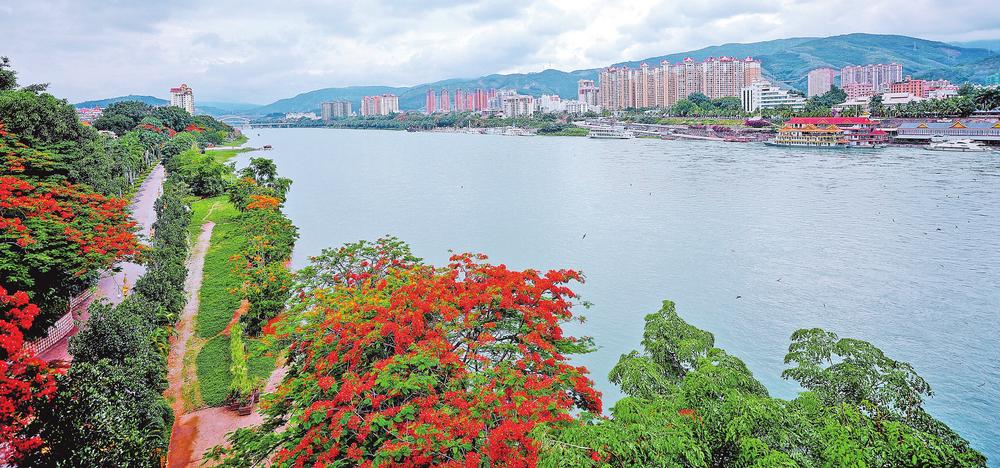 初夏时节,火红的凤凰花盛放澜沧江两岸,染红了西双版纳傣族自治州景洪市的街头巷尾,为城市增添了一道风景。