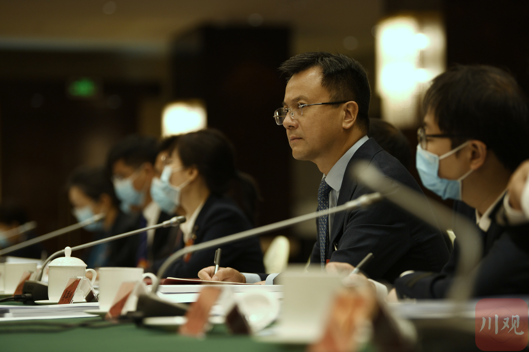 蒲鹏程代表(右一)表示,完全赞同、坚决拥护党代会报告,将在学深学透、转化细化、落地落实上下功夫,切实把省党代会部署要求转化为顺庆行动。