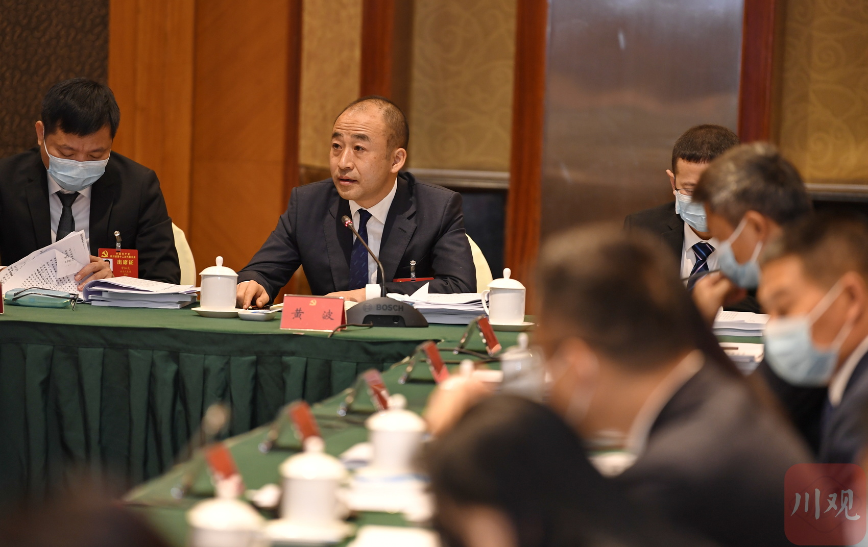 黄波代表(左二)表示,我省五年来取得的辉煌成就让人倍感自豪,省党代会报告描绘的蓝图催人奋进。我们要撸起袖子加油干,为全面建设社会主义现代化四川贡献基层力量。