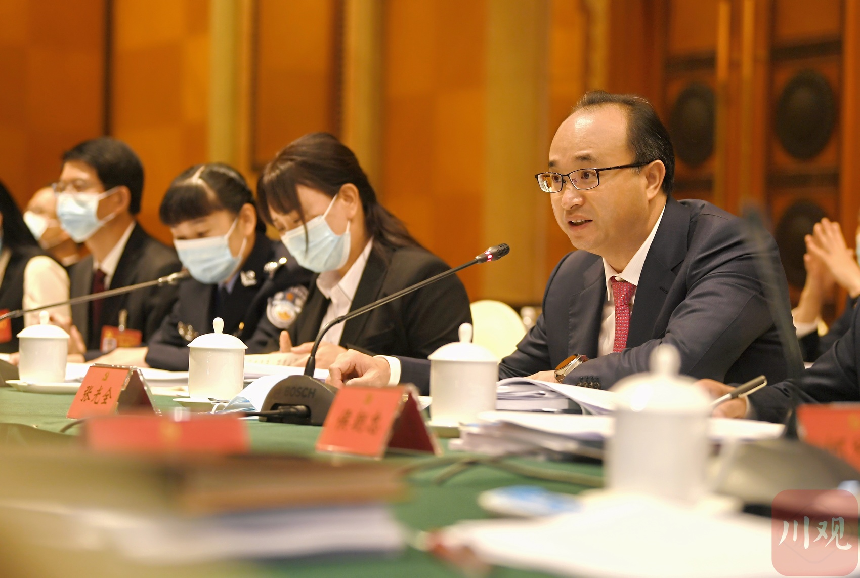 张光全代表(右一)表示,将加快建设“生态田园 有机西充”,把“讲政治、抓发展、惠民生、保安全”的工作总思路落实在西充大地上。