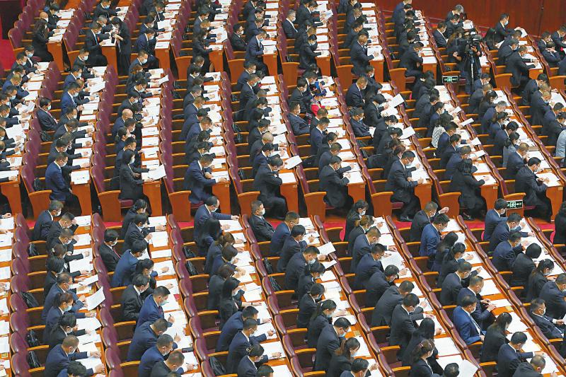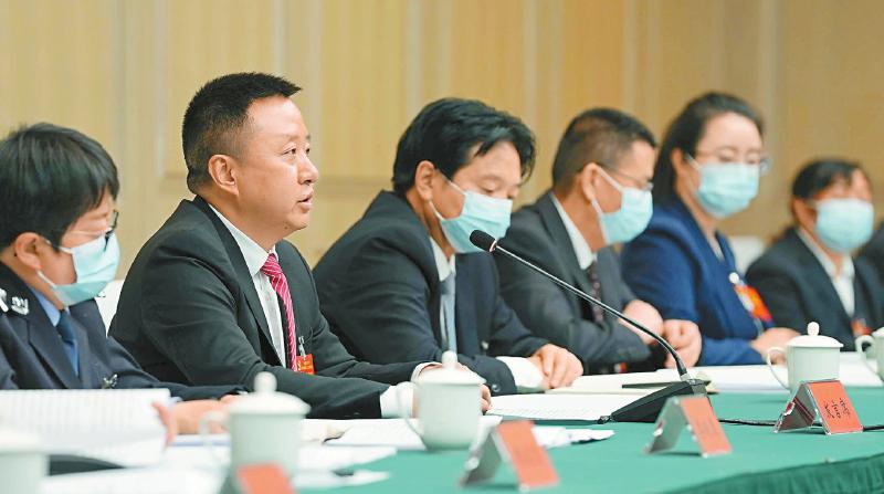 杨小广代表(右一)建议,着力构建适应超大城市治理要求的公共卫生应急管理体系和医疗卫生服务供给体系