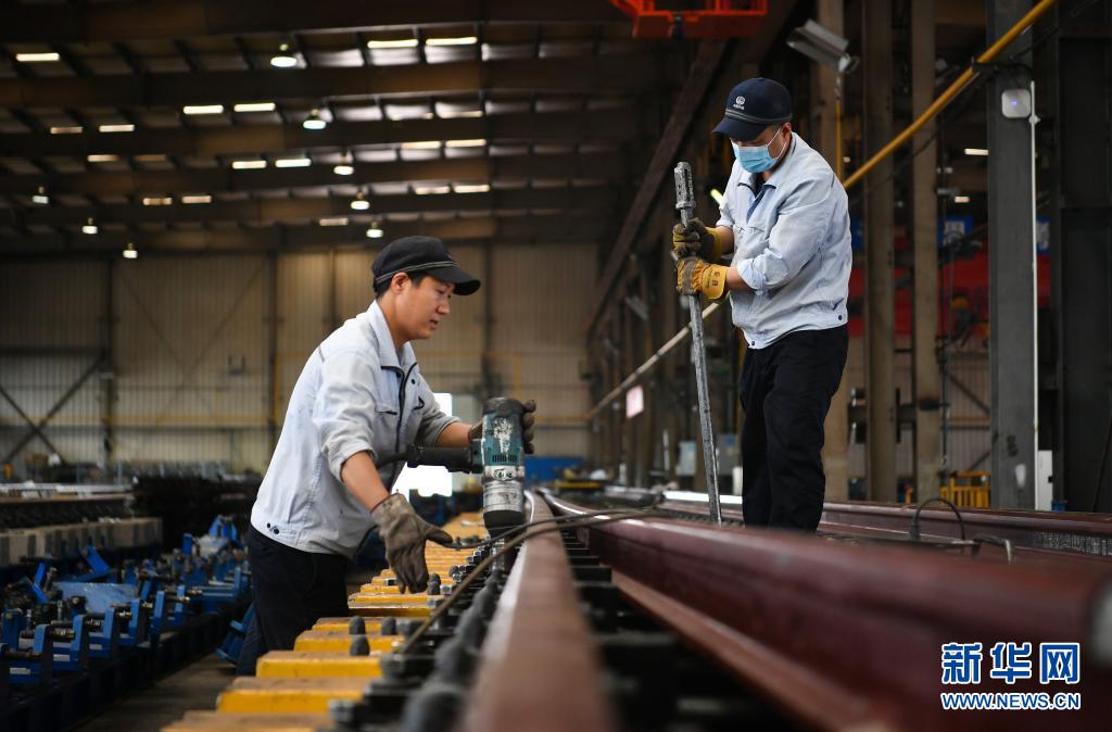 5月18日,工人在中铁宝桥集团有限公司生产车间工作。新华社记者 张博文 摄