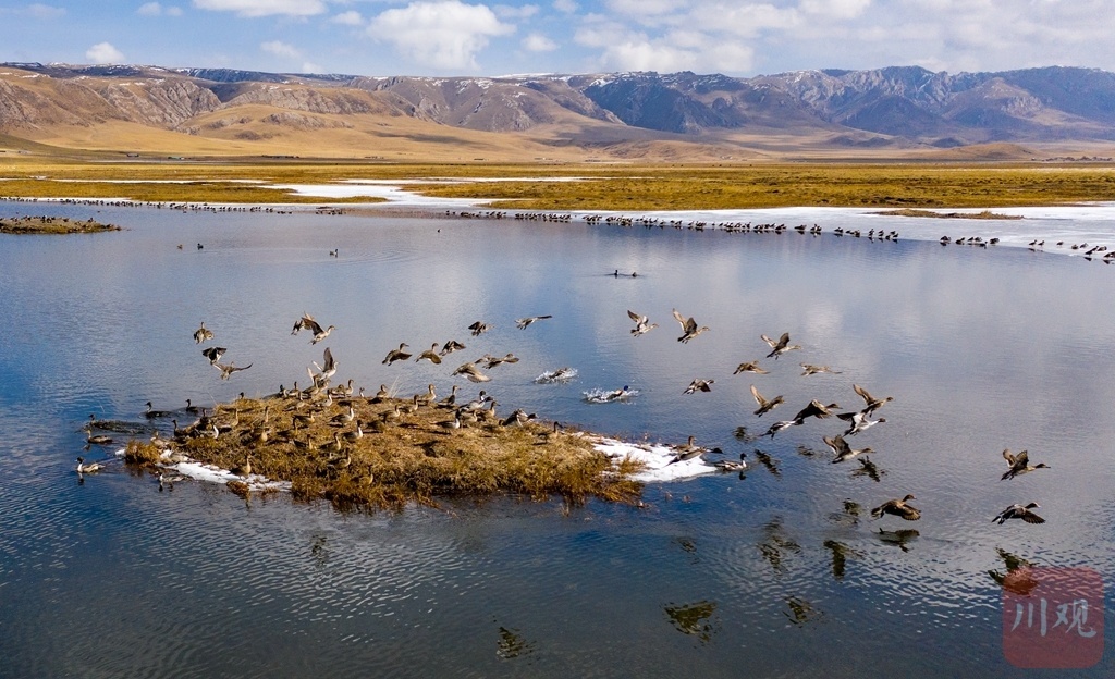 川西高原黄河上游生态保护,昔日“荒草滩”成为珍稀鸟类安居的湿地乐园。川观新闻记者 尹钢 摄