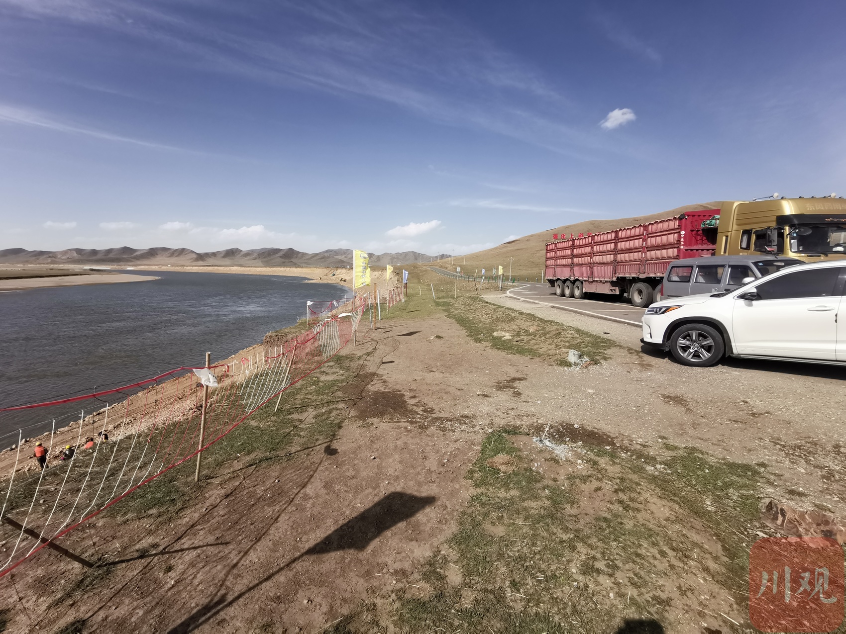 位于若尔盖县唐克镇和辖曼镇交界处的黄河干流若尔盖段应急处置工程施工现场。