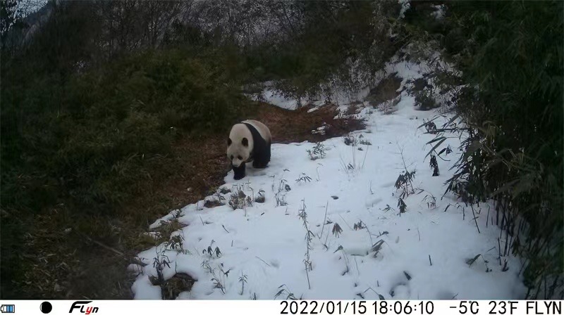 2022年1月15日,大相岭山系泥巴山区域的红外相机拍摄到野生大熊猫。(荥经县大相岭自然保护区管理局供图)