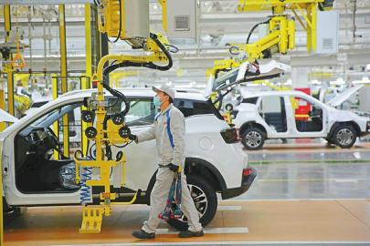 在宜宾三江新区的汽车产业园生产车间,工人在智慧生产线上忙碌。兰锋 摄(视觉四川资料图片)