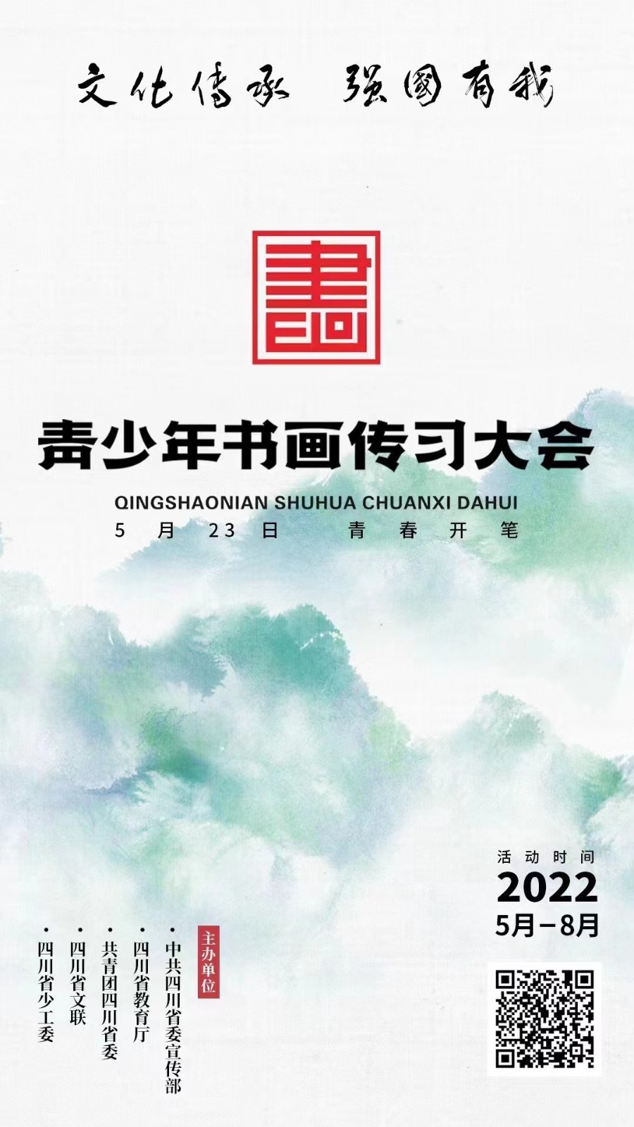 5月到8月,一场以“文化传承 强国有我”为主题的青少年书画传习大会系列活动正在天府大地火热开展、传习新风,青春执笔,书写天府,画意中国。