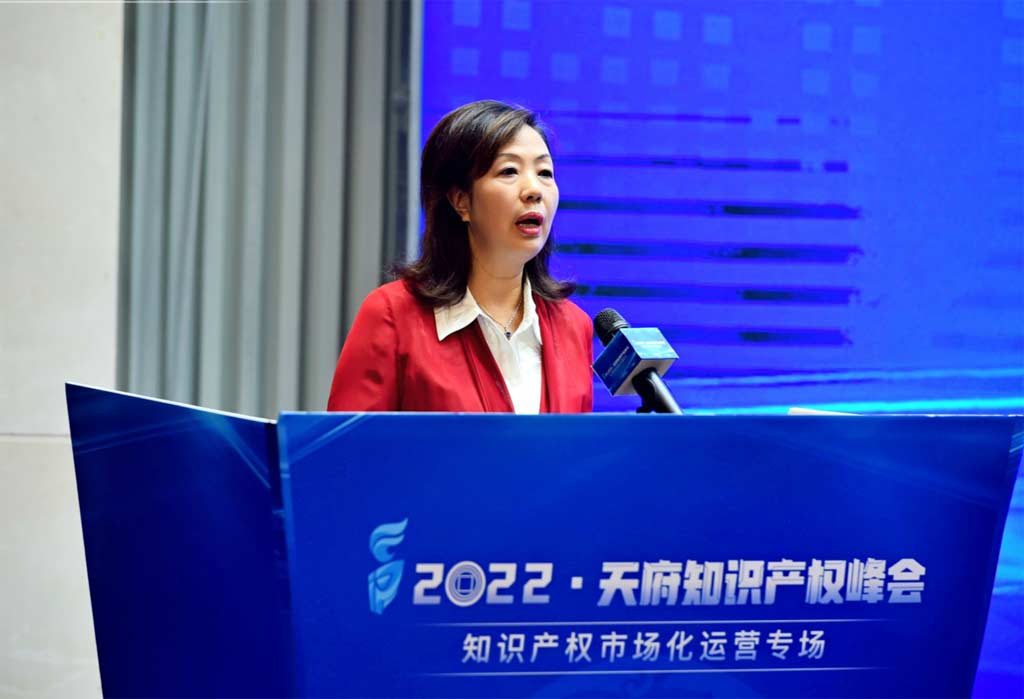 四川省知识产权中心主任谢商华在天府知识产权峰会上发布“四川省2021年度高校院所知识产权市场化运营转化十大典型案例”