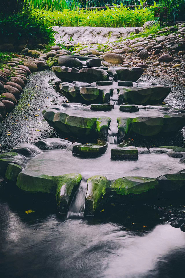 不只是水,踏进活水公园的人们还常常被它丰茂的植被所震撼。不为人知的是,这里可以说是成都市中心的“微缩峨眉山”了。公园设计师引种峨眉山特有的本土植物,在鱼头处复原出峨眉山植物群落。整个园区现有植物400余种,包括峨眉桃叶珊瑚、观音莲座蕨等峨眉山特色珍稀植物,和红豆杉、珙桐等国家一、二级保护植物。