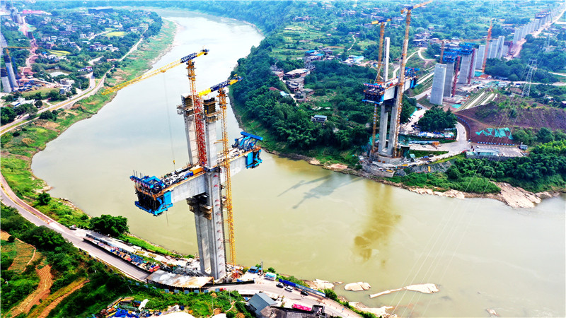 渝昆高铁控制性工程泸州沱江特大桥主塔封顶