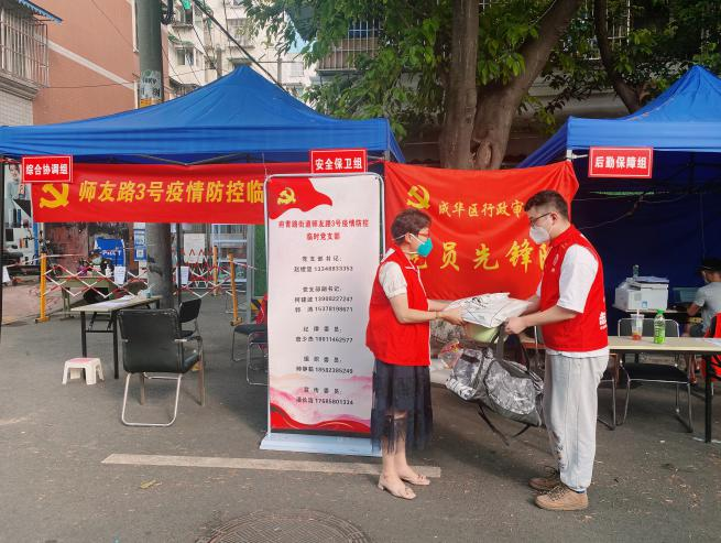 筑牢“防疫前哨站”,严管严守到位。7月25日,成华区行政审批局迅速集结,撑起防疫“保障伞”。行政审批局在府青路街道师友路3号院点位成立临时党群服务阵地,落实“1+7”服务机制,成立1个工作专班和7个工作小组,12名志愿者24小时3班轮岗,各司其职、协同配合、高效推进,从白天到黑夜,坚守着“疫情不退,我们不退”的诺言。做好“群众中转站”,问需解忧到位。疫情管控期间,协助完成5轮核酸检测共计2000余次,发放爱心蔬菜300余份,通过微信群24小时在线答疑、收集住户需求,解决好群众的“急难愁盼”。师友路3号院为老旧小区,年老独居等特殊群体多、情况复杂,做好特殊人群关怀保障工作更是重中之重。特殊时期,“存药告急”“外出就医”成了这些群众最关心、最焦虑的事情之一。特需服务组第一时间联系了药店,与药店达成合作,保障居民用药“不断档”,同时,医疗服务组积极与社区网格员、辖区定点医院、社区卫生服务中心协调沟通,确保就医“绿色通道”畅通无阻。