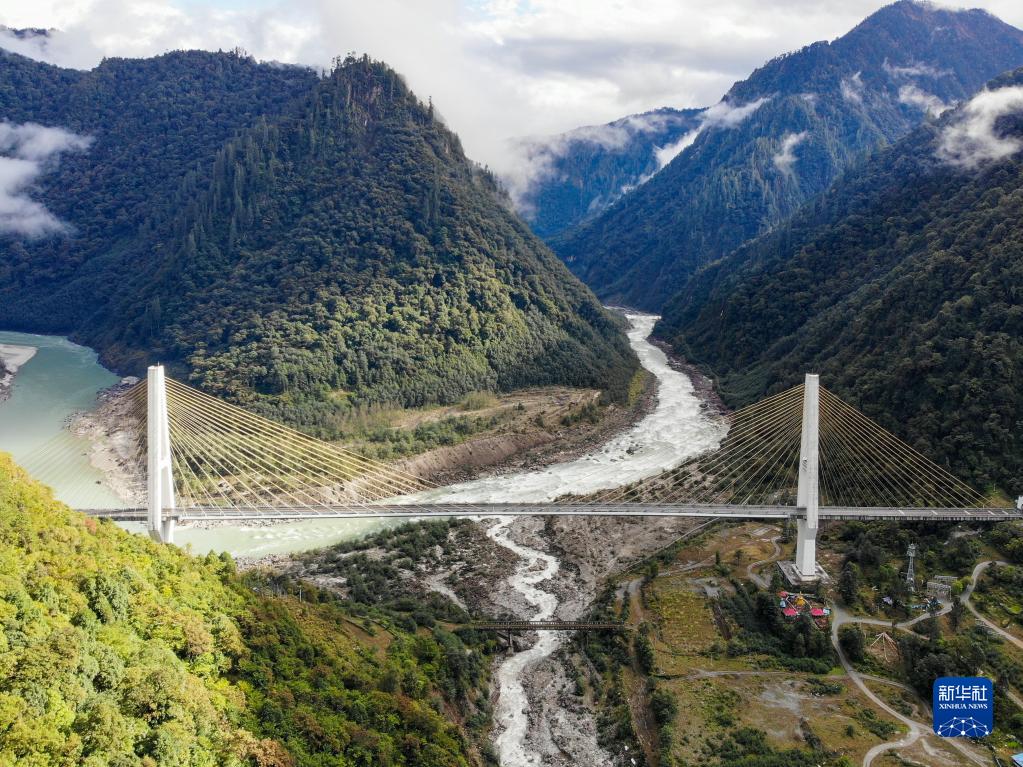 这是川藏公路通麦路段上的迫龙沟特大桥(无人机照片,2019年10月27日摄)。新华社记者 孙非 摄