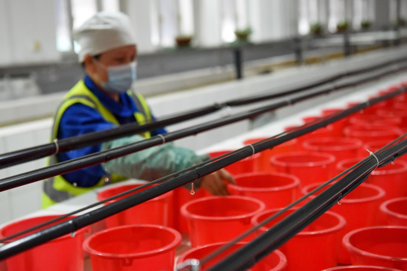 在新疆天业(集团)有限公司滴灌信息控制中心,工作人员在进行滴灌试验(2021年3月11日摄)。新华社记者 丁磊 摄