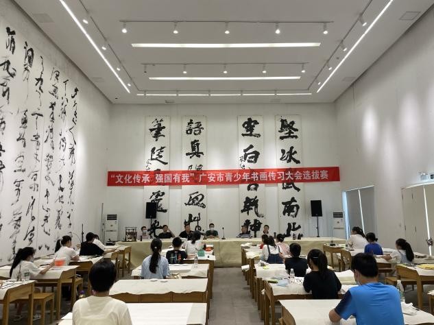 四川新闻网-首屏新闻广安8月12日讯(记者 游伍琼 摄影报道)8月11日,由广安市委宣传部、市教育体育局、团市委、市文联、市少工委联合主办的“文化传承 强国有我”广安市青少年书画传习大会选拔赛在广安希贤学校举行。