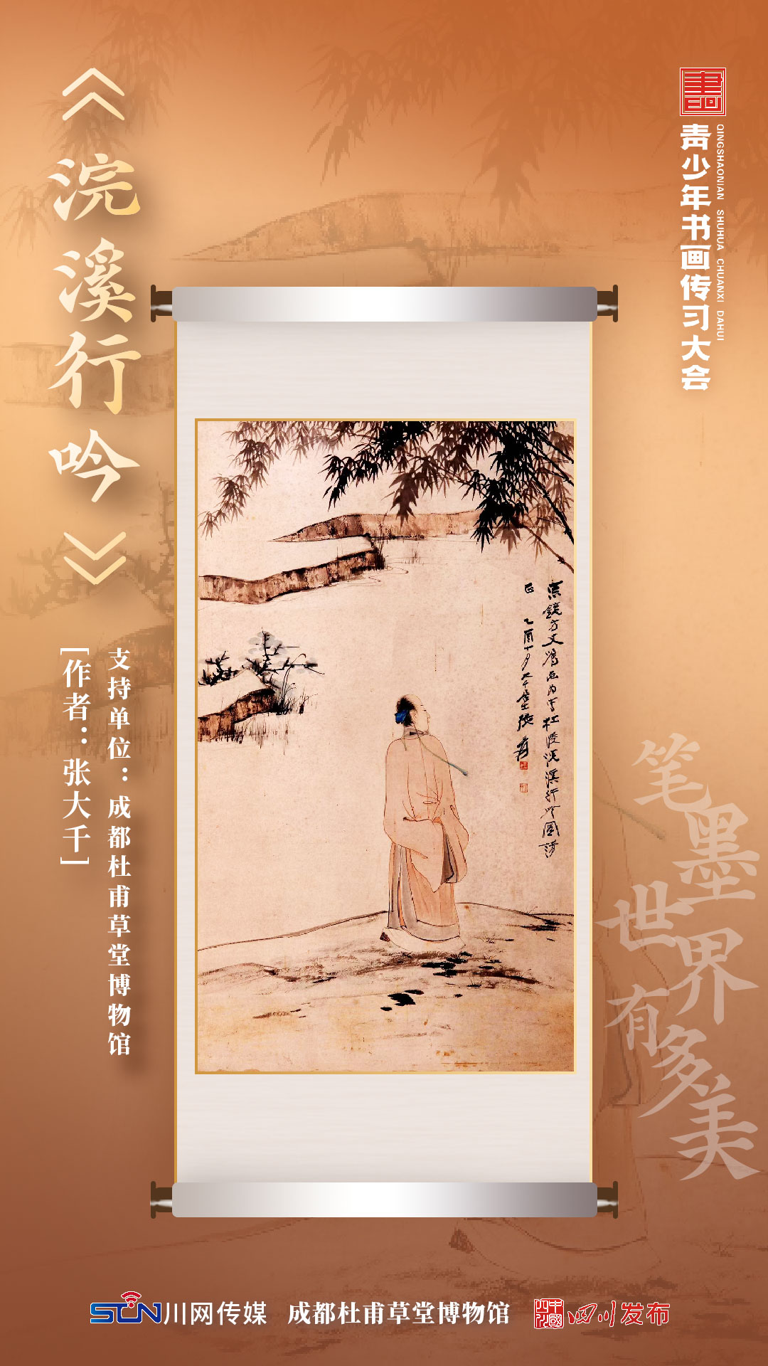 【书画传习全国联动丨成都杜甫草堂博物馆】张大千《浣溪行吟图》:是诗人与几代艺术家的唱和