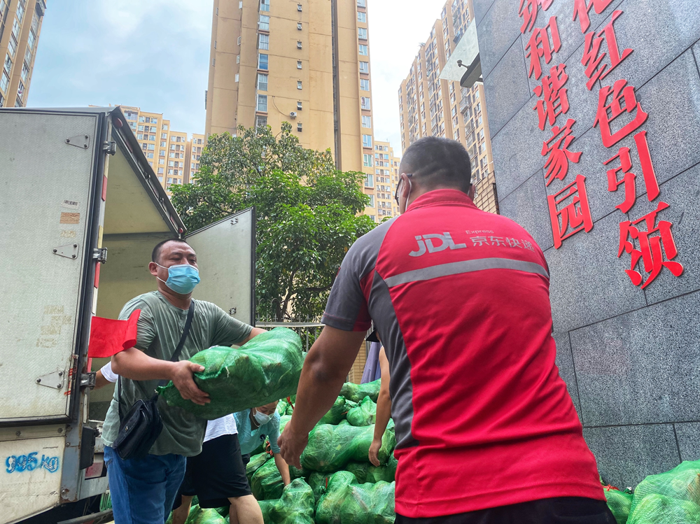 京东物流员工配送保供蔬菜(京东集团提供)