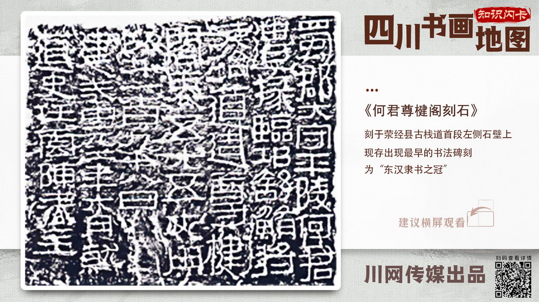 唐林谈道,雅安的书画历史同样悠久,汉代雅安荥经的《何君阁道碑》为“汉隶之首”,芦山县《巴郡太守樊敏碑》是东汉时期碑刻书艺代表作,雅安芦山有汉代画像石棺《王晖石棺画像》等,这些汉代的书画作品闻名天下。而近代,雅安名山有“尊经四杰”吴之英,是成都人民公园“辛亥秋保路死事纪念碑”的书写者之一。