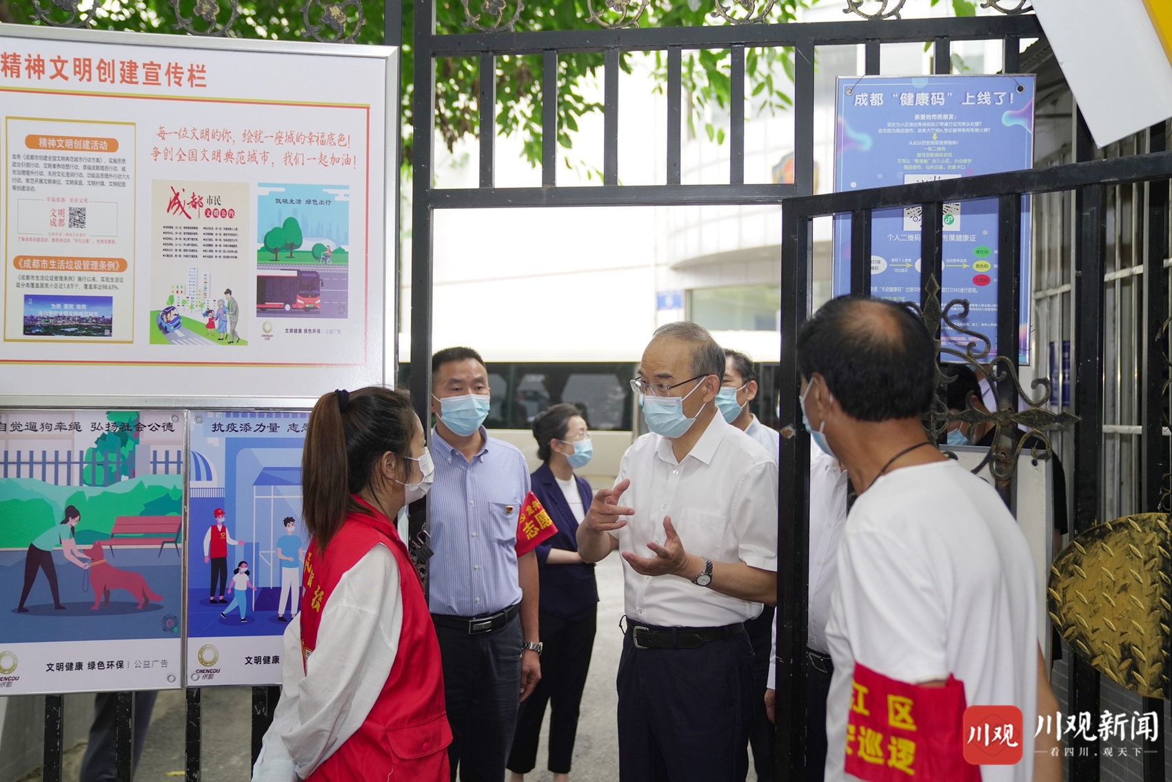 9月2日,省委副书记、省长黄强在成都市锦江区牛市口街道龙舟社区实地检查管控措施落实情况,了解核酸采样点人员配备、群众组织、样本转运等情况。