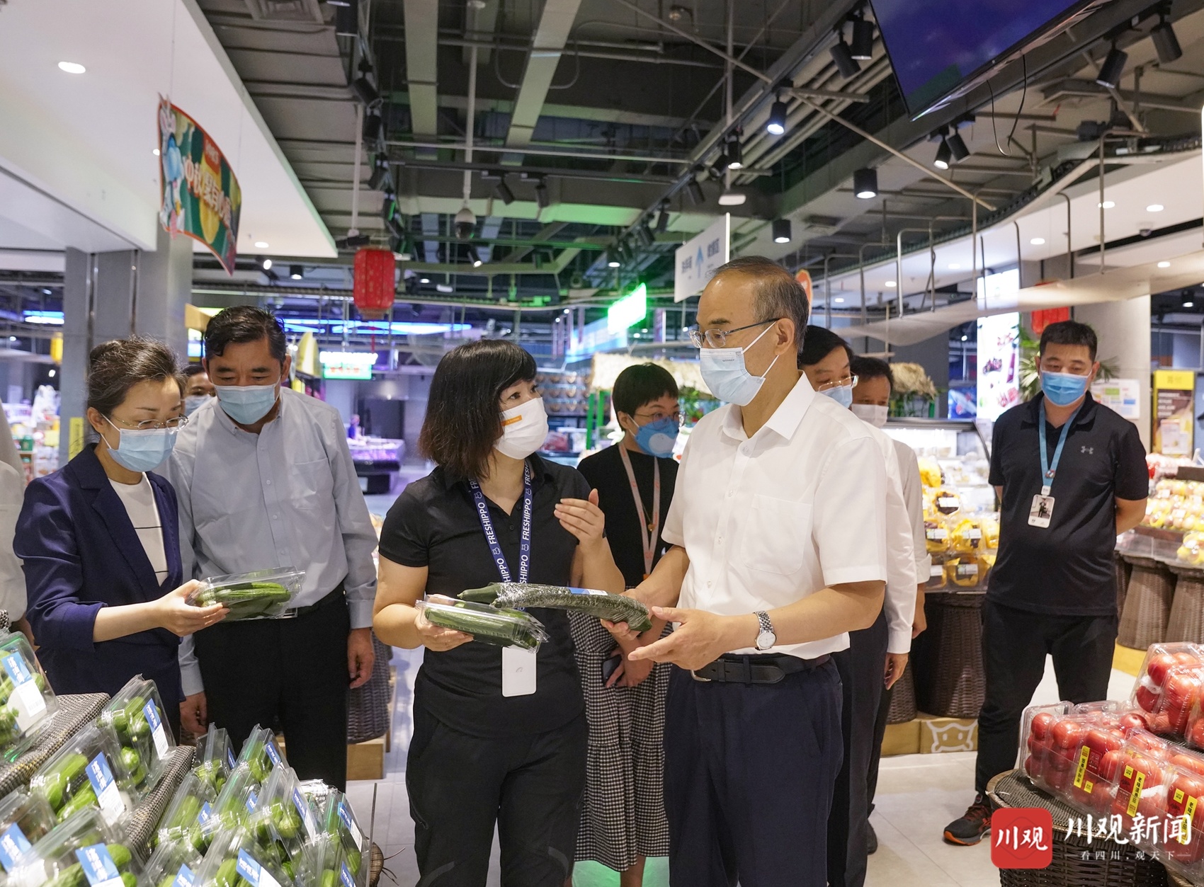 在金牛区盒马鲜生茶店子店,黄强察看米面肉蛋蔬果等供应销售情况,走进物流后场了解线上订购、分拣、配送情况。他强调,要加强重点生活物资储备调运,确保市场供应充足、物价稳定,引导大型商超做好配送服务,做好快递配送、餐饮外卖等保供人员闭环管理和生活保障。