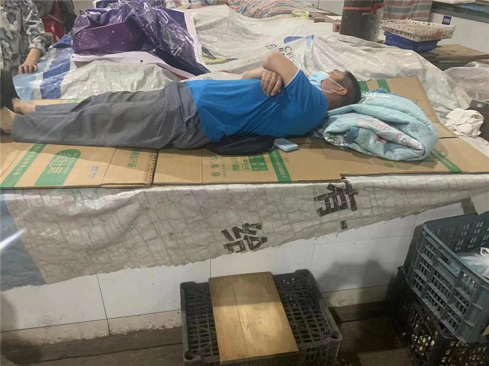 在这些床上,他们睡得并不安稳,因为夜间正是市场最繁忙的时刻,随时会有“活路”将他们惊醒,投入到市场防疫值守、秩序维护等工作之中。