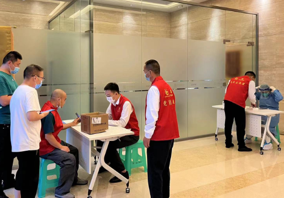 同时,街道营商办对接了辖区相关医疗机构,组织医务人员分批分组进入各企业,对8000余名企业人员进行核酸采样,并安排保障人员全程引导维护,确保核酸采样有序。街道营商办相关负责人表示:“企业闭环生产期间,我们有专人对接,按照防疫要求和企业需求,为企业第一时间做好相关保障服务。”
