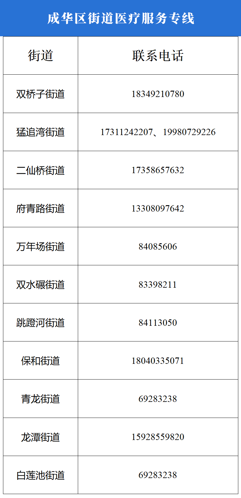转扩!成都成华区疫情防控应急服务通讯录