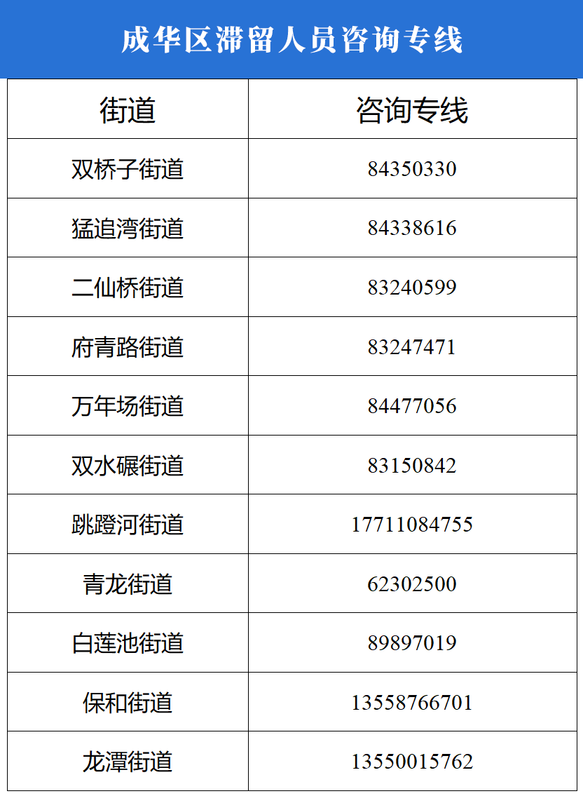 成都成华区滞留人员咨询专线