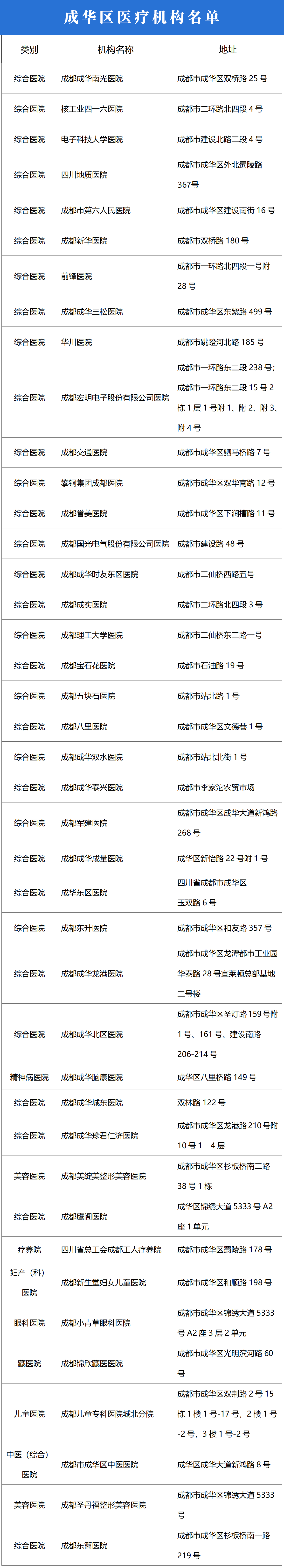 成都成华区医疗机构名单