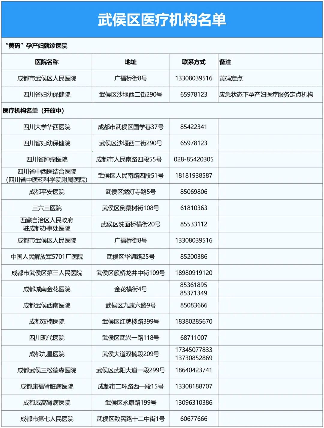 《成都武侯区疫情防控应急服务通讯录》来了!