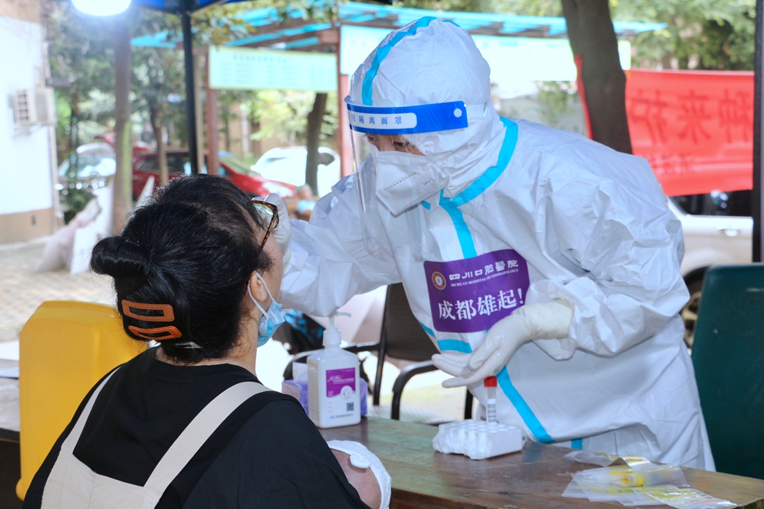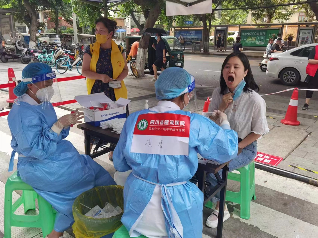 川投集团所属口腔医院26名医护人员组成的核酸采样突击队,活跃在成都疫情防控一线。