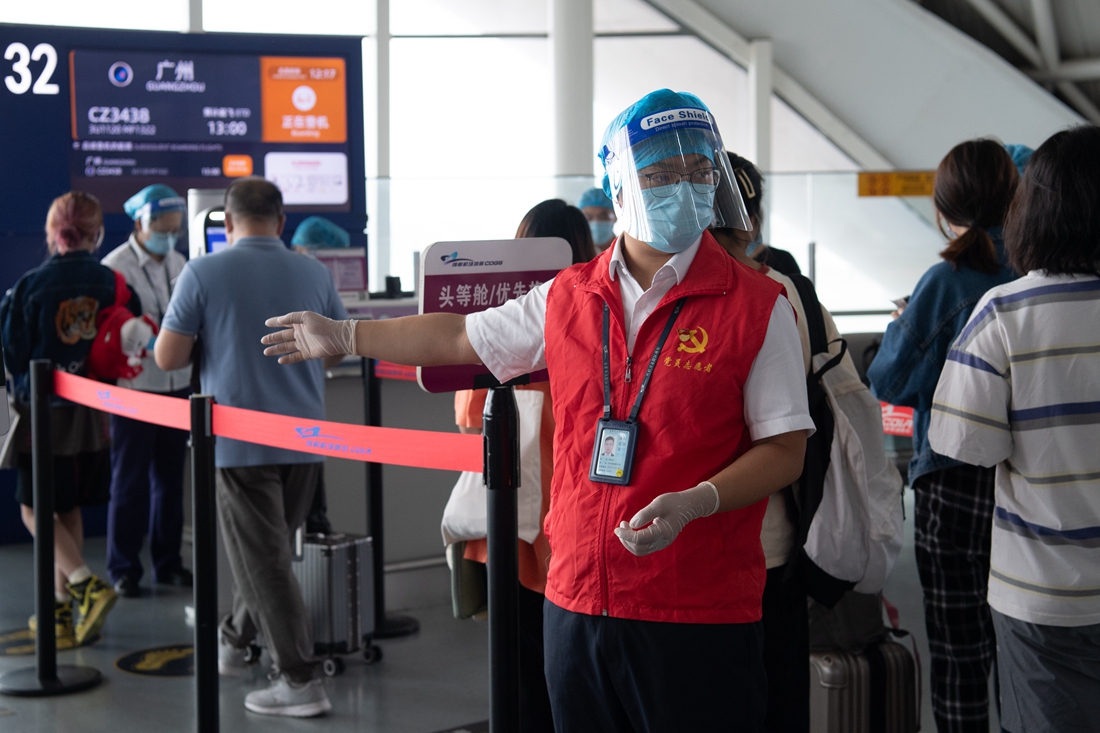 省机场集团党员志愿者支援一线保障旅客顺利出行