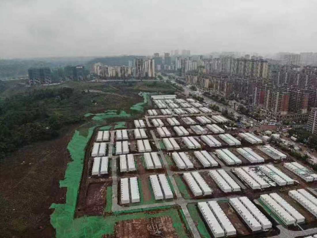 省建院设计的广安区凤凰大道地块方舱隔离点航拍图,该隔离点位可提供1200床。
