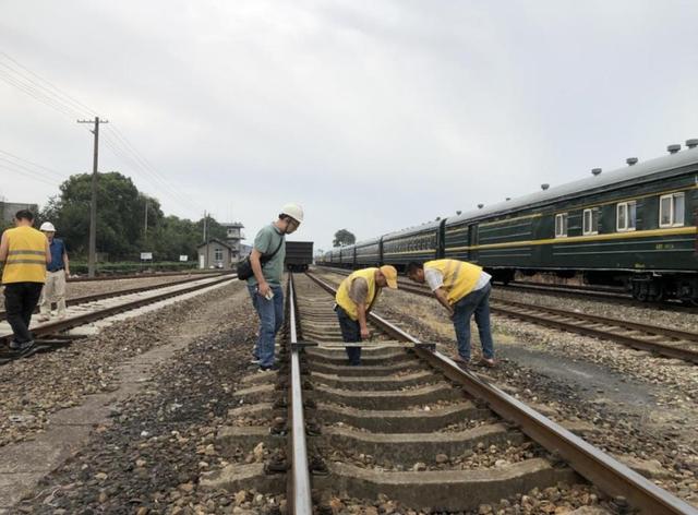 地震后川化专用铁路线路检修人员对轨距标准进行精确测量,排查隐患。四川能投供图
