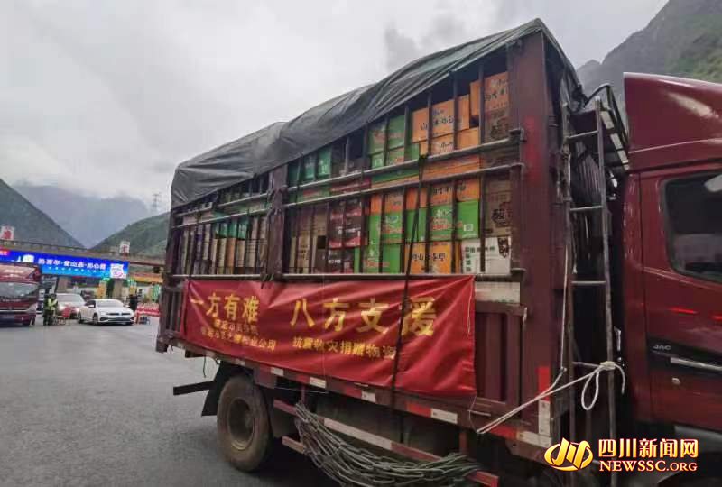 沿线物资运送车辆集结驰援泸定