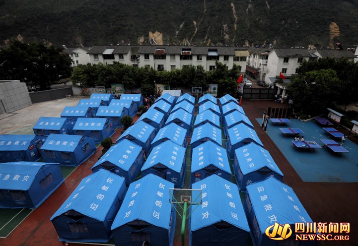 地震发生后,学校在操场临时搭起了帐篷,供孩子们学习和生活