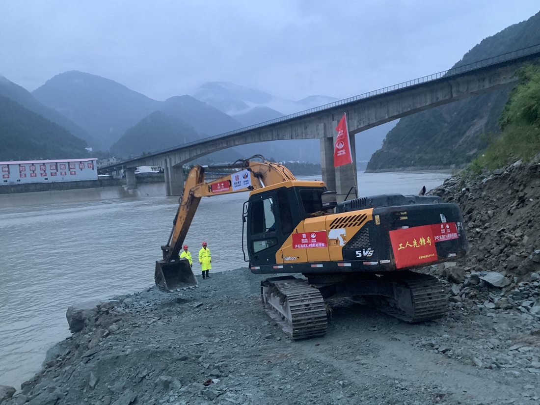 经过7小时的抢建,到9月8日下午18时,临时码头已具雏形,预计9月9日将投入使用。目前,蜀道集团从全省各地调集包括挖掘机、装载机等在内的30余台大型机械设备已陆续抵达临时码头,9月9日将通过水路运送至大渡河下游湾东村片区塌方段附近开展抢通工作,为救灾人员和应急救援物资打通“生命通道”。