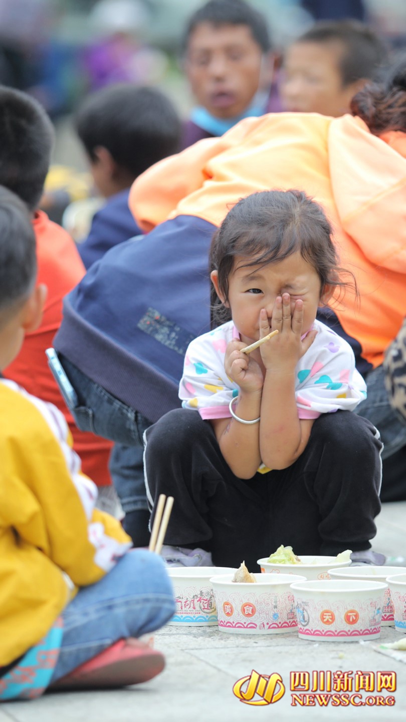 川网传媒·四川新闻网雅安9月8日讯(川网传媒特别报道组记者 李举涛 杨德慧 摄影报道)9月7日下午,雅安市石棉县王岗坪乡挖角村安置点,有序而温馨。一名正与家人、乡邻一起用餐的小女孩,看到记者的镜头后,俏皮地“卖了个萌”。这一幕,令人温暖不已。