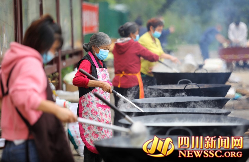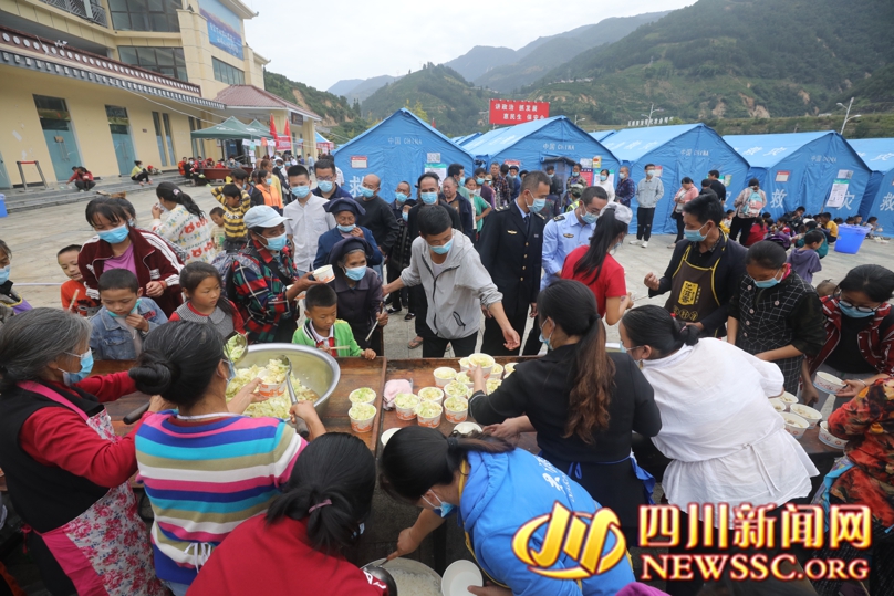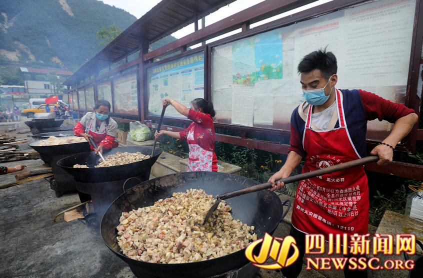 川网传媒·四川新闻网雅安9月8日讯(川网传媒特别报道组记者 李举涛 杨德慧 摄影报道)9月7日下午,雅安市石棉县王岗坪乡挖角村安置点,升起了袅袅炊烟。约10口大锅一字排开,受灾群众自发组织起来,开始为安置点的邻里乡亲准备晚餐。
