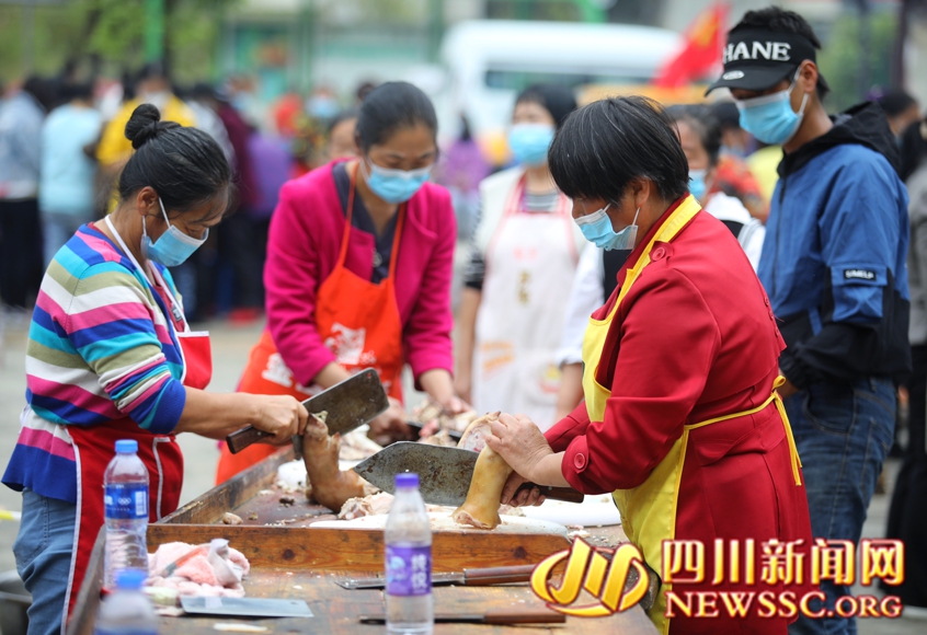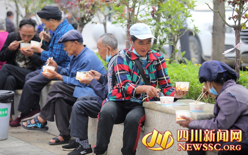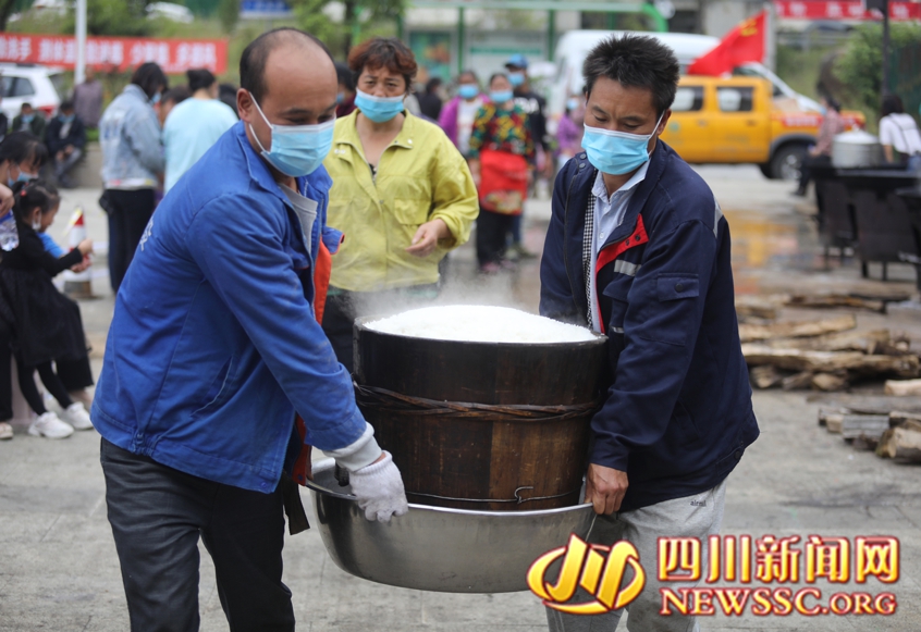 “今天报名做饭的受灾群众有40多人,但现场帮忙的人数远远不止。有一位村民,还捐了两头猪。”挖角村14组组长潘伯成颇有感慨地说,“大家彼此心连心,就像一个温馨和睦的大家庭。”