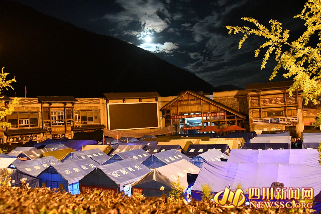 圆月下的震区安置点