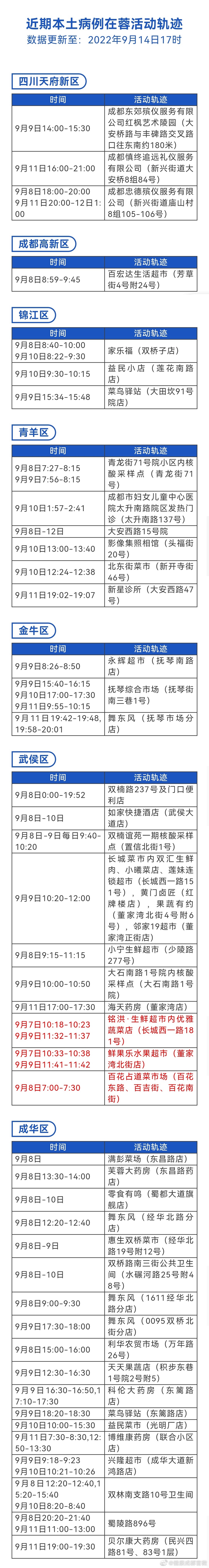 成都市近期本土病例活动轨迹及风险区通告(更新至9月14日17时)