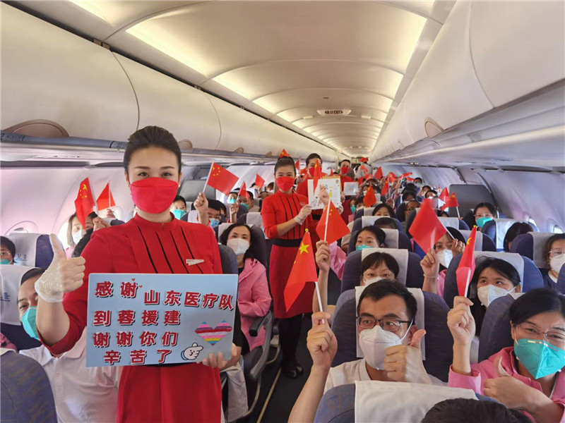 9月19日,川航共执飞5架医疗包机,分别承运来自山东、河南和江苏的943名援川医疗队员,从成都出发,先后顺利抵达济南、青岛、郑州、南京和无锡。