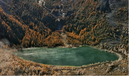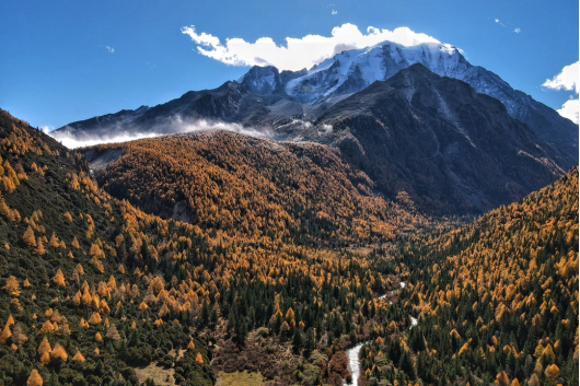 这里浓缩了整个川西的秋色,不仅有高耸入云的皑皑雪山,更有五彩缤纷的浩瀚森林和亮如明镜的美丽湖泊。