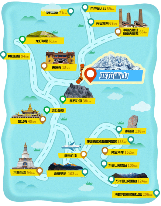景区地址:甘孜州道孚县303省道,自驾导航“亚拉雪山”