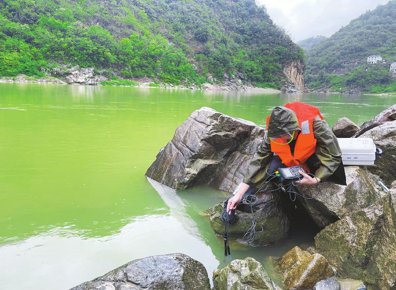 工作人员在嘉陵江取水采样,进行水质检测。记者 燕巧 摄