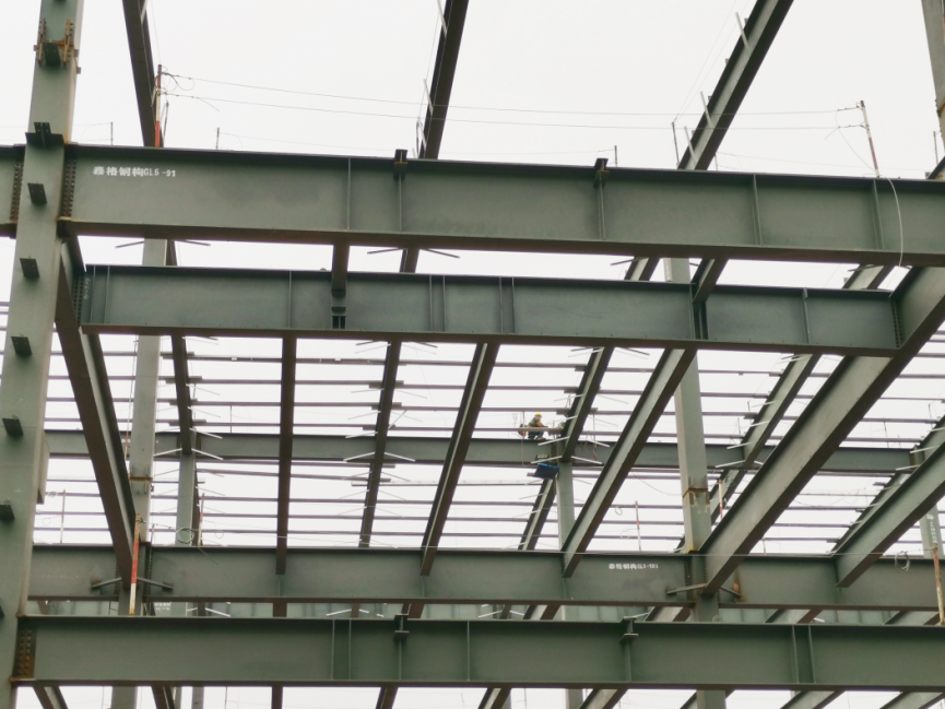 简州新城智能网联厂房项目正进行钢结构次龙骨安装